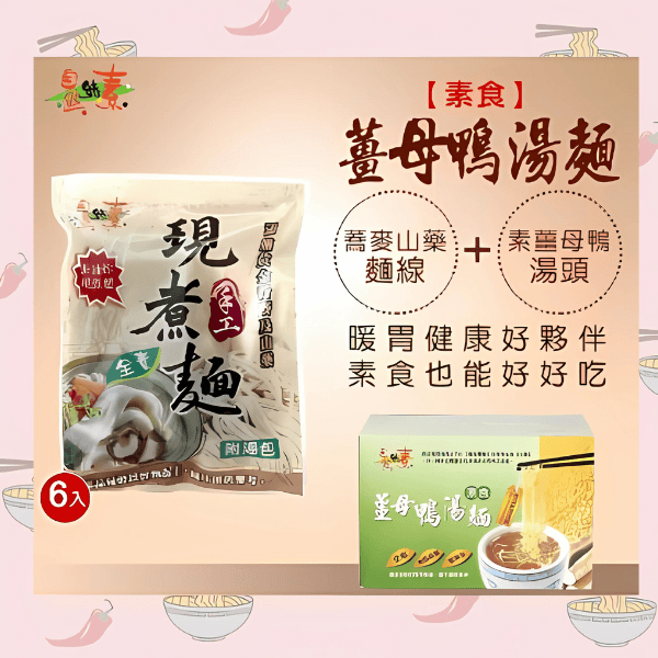Delicate Vegetarian Ginger Duck Handmade Noodles 6x90g 佳饌素食薑母鴨手工湯麵(全素) 6x90克